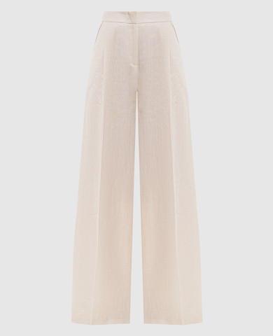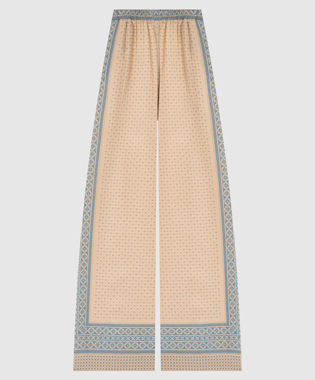 Бежеві штани із шовку в принт