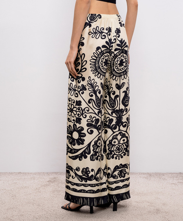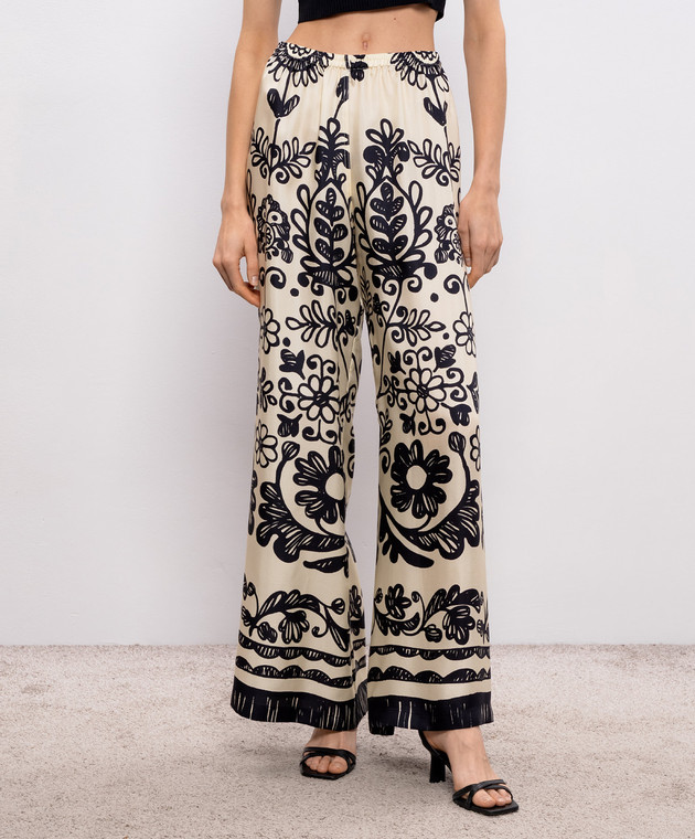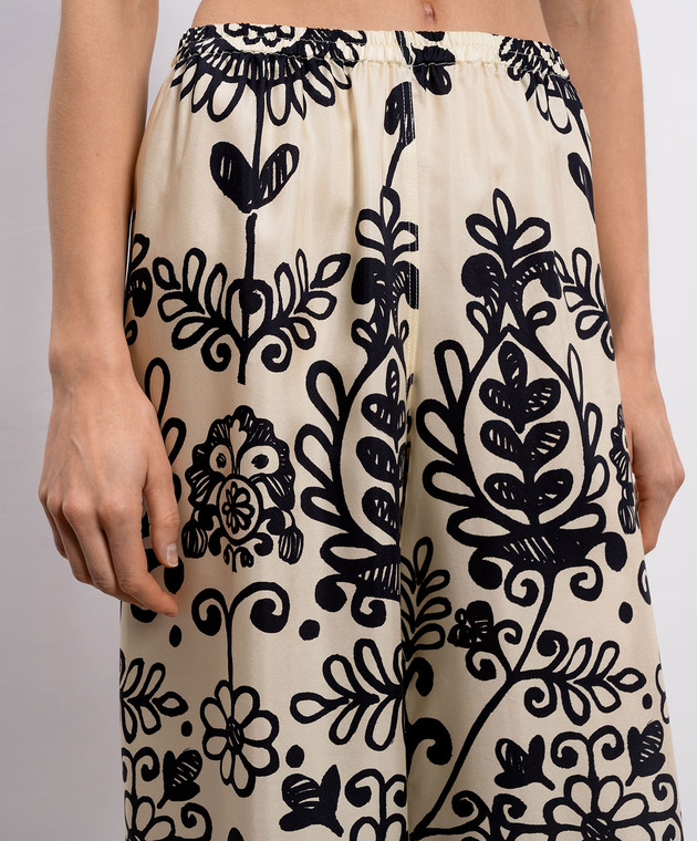 Бежеві штани із шовку в принт