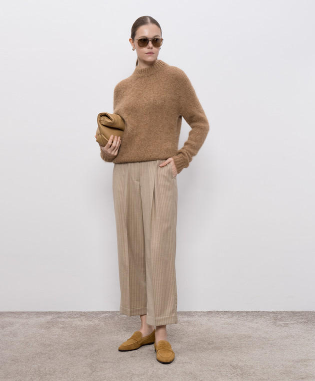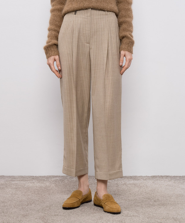 Бежеві штани з вовни в смужку