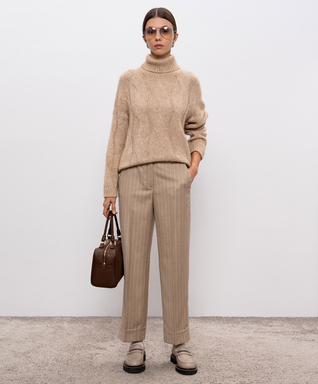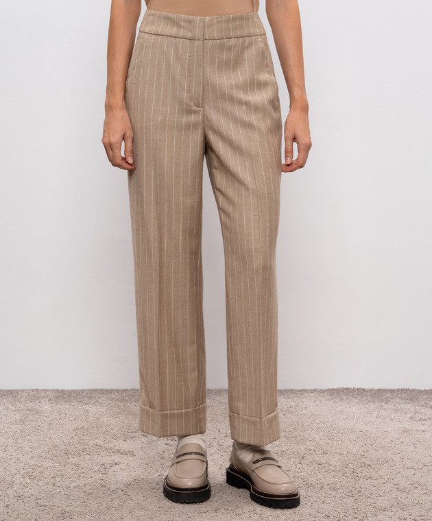 Бежеві штани з вовни в смужку