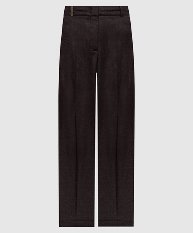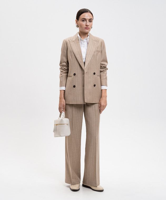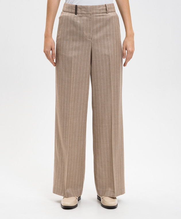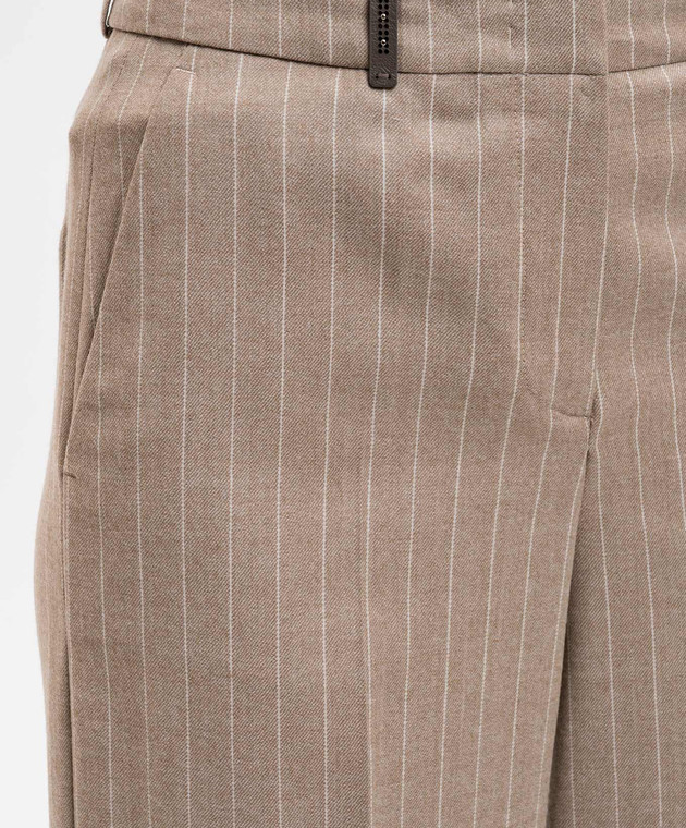 Бежеві штани з вовни в смужку з люрексом