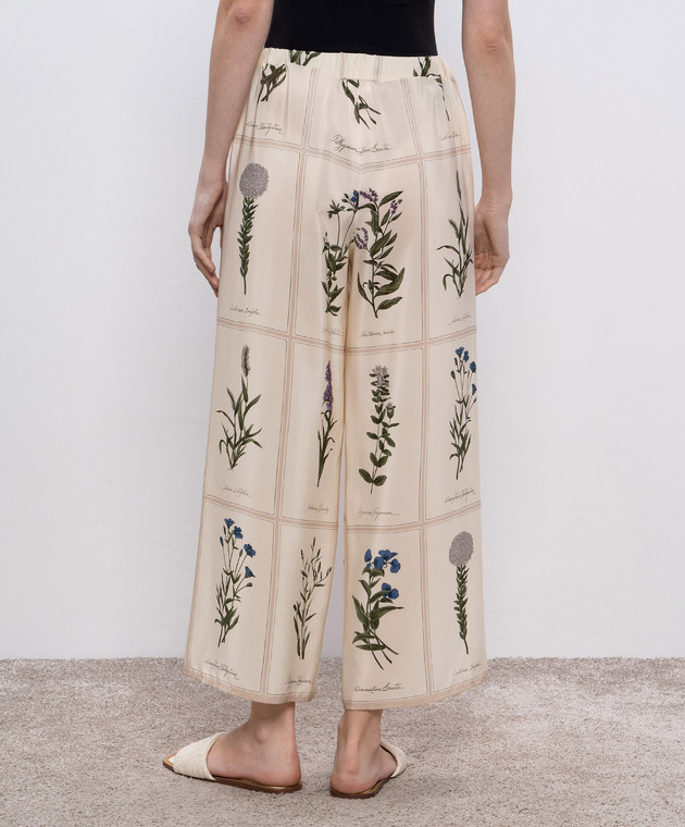 Бежеві штани LORY із шовку в принт