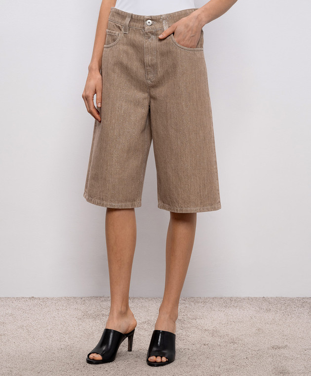 Бежеві джинсові бермуди з люрексом