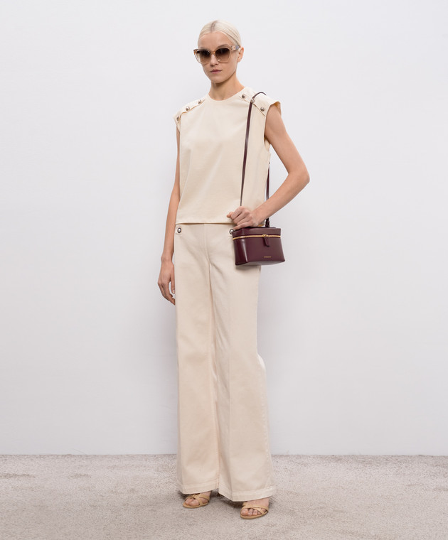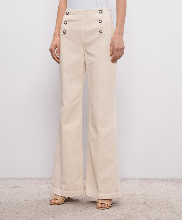 Бежеві джинси кльош з патчем логотипа