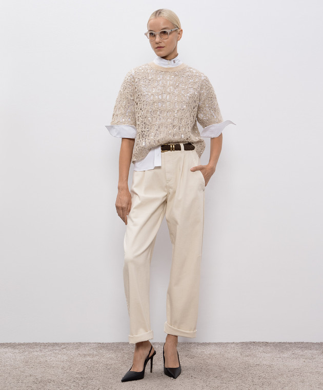 Бежеві джинси з ланцюжком моніль
