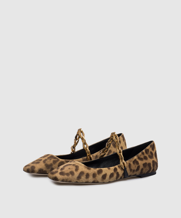 Бежеві шкіряні балетки Diamond Tilda Flat в анімалістичний принт