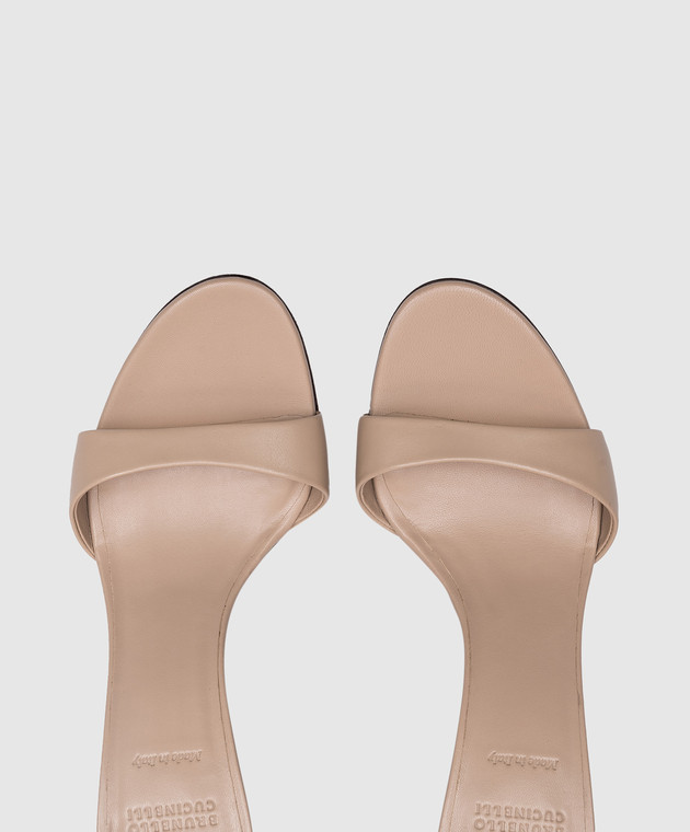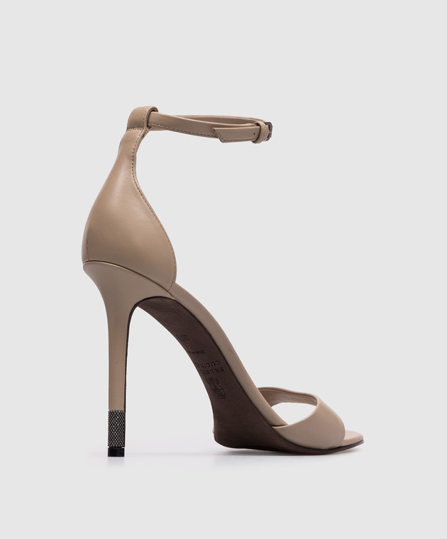 Бежеві шкіряні босоніжки з ланцюжком моніль
