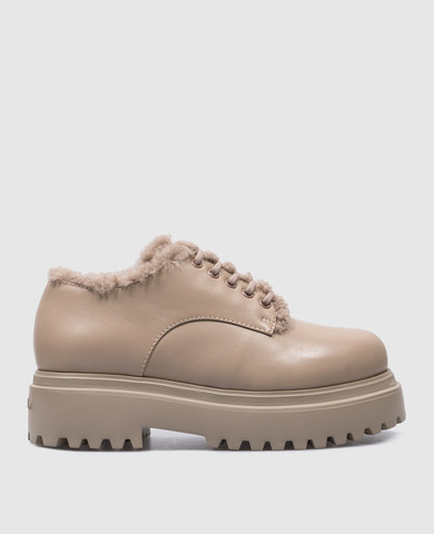 Бежеві шкіряні дербі Renger на хутрі