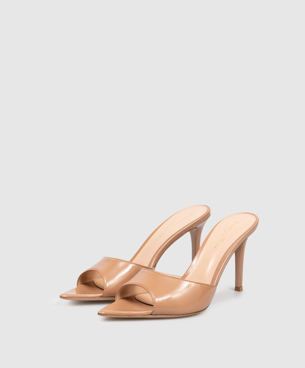 Бежеві шкіряні глянцеві мюлі ELLE