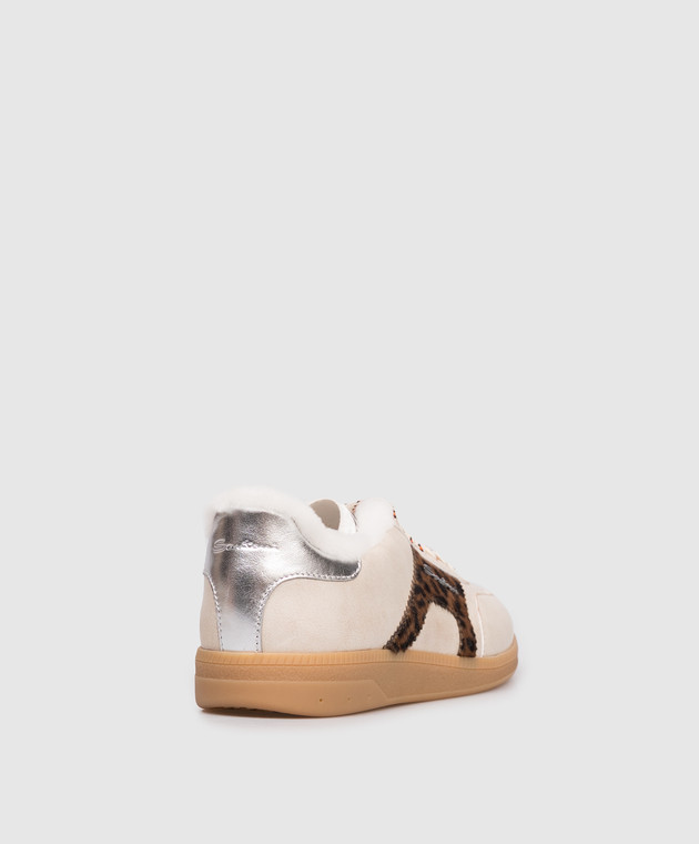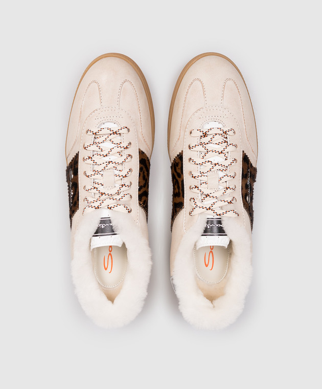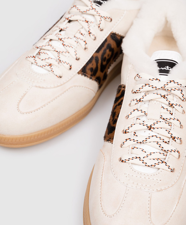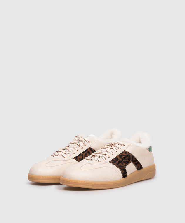 Бежеві шкіряні кросівки Oly на хутрі з логотипом
