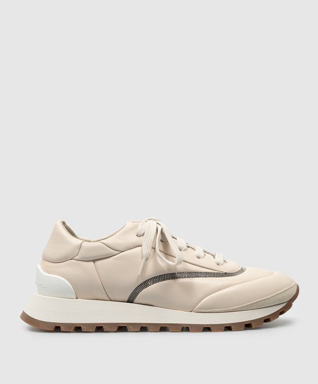 Бежеві шкіряні кросівки з ланцюжком моніль