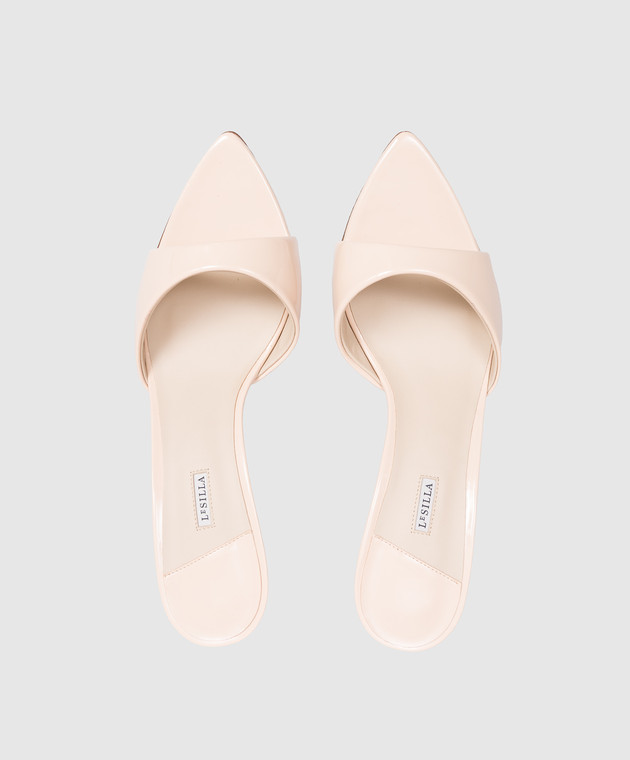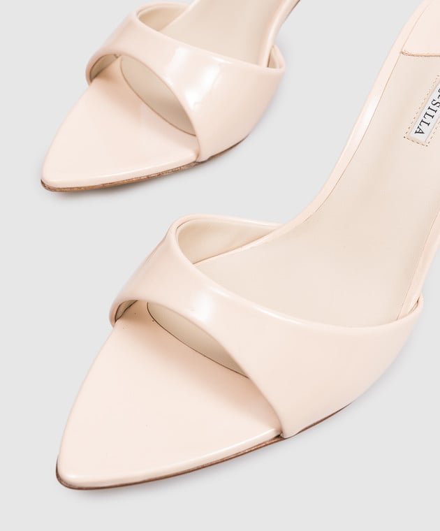 Бежеві шкіряні лаковані мюлі Bella