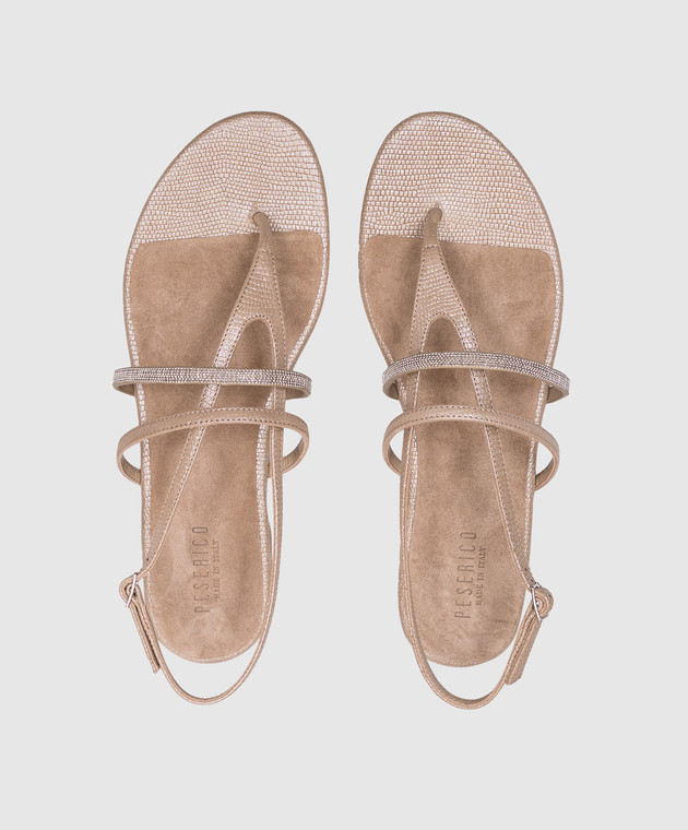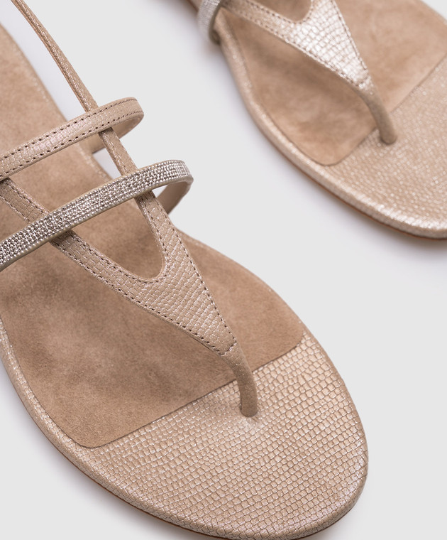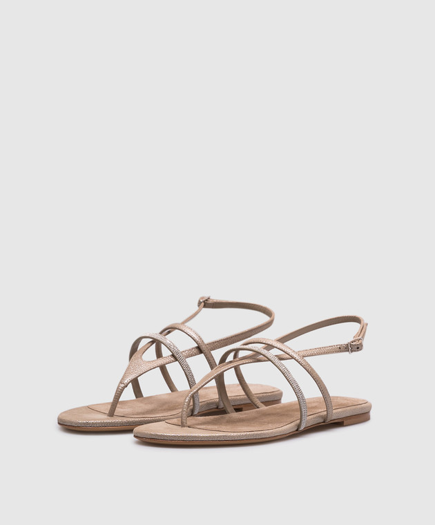 Бежеві шкіряні сандалі з ланцюжком моніль