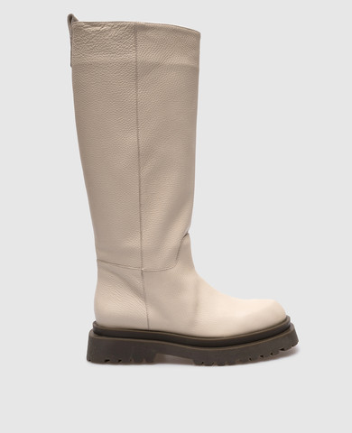 Бежеві шкіряні чоботи