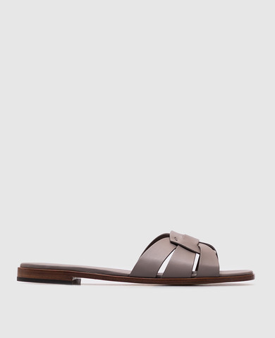 Бежеві шкіряні шльопанці