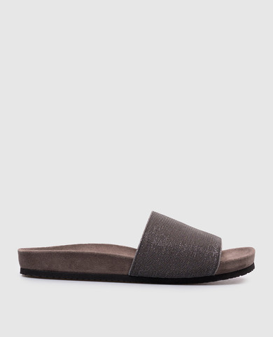 Бежеві шкіряні шльопанці з ланцюжком моніль