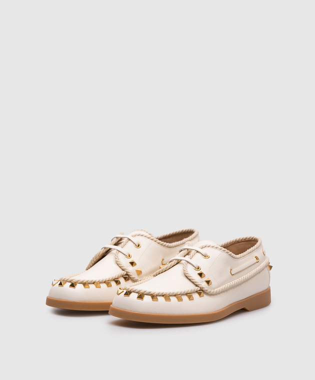 Бежеві шкіряні топсайдери Rockstud