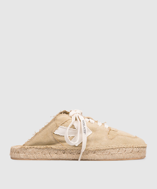 Бежеві кросівки-мюлі з нашивкою емблеми