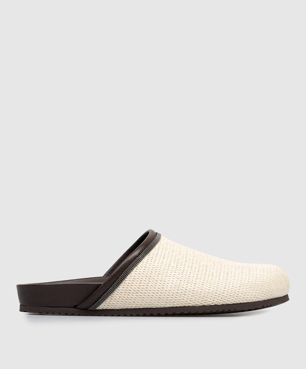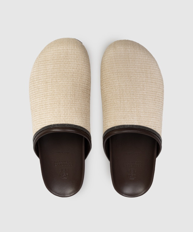 Бежеві мюлі з рафії з ланцюжком моніль