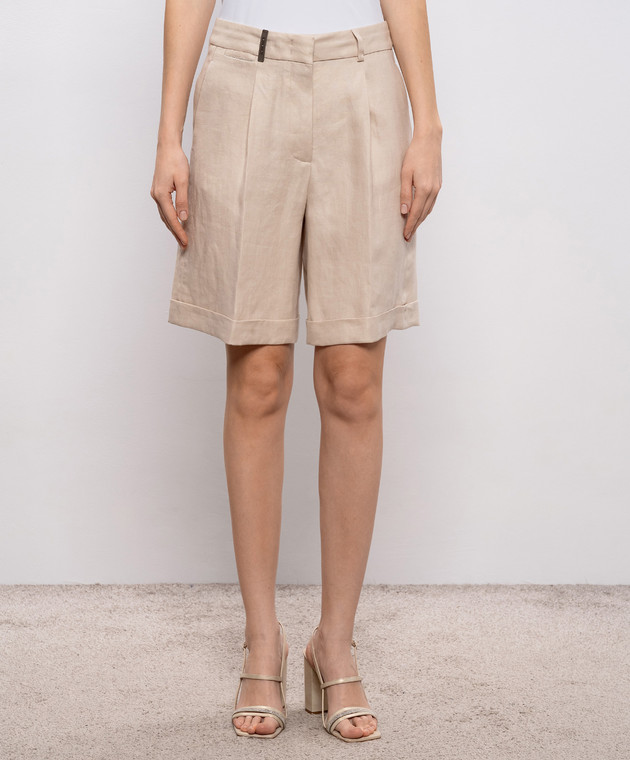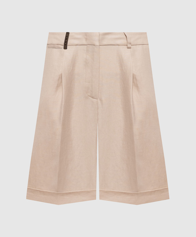 Бежеві шорти з льону з патчем та ланцюжком