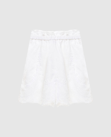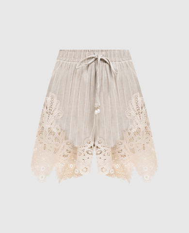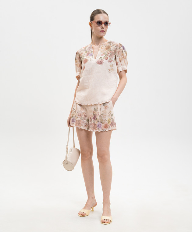 Бежеві шорти з льону в принт