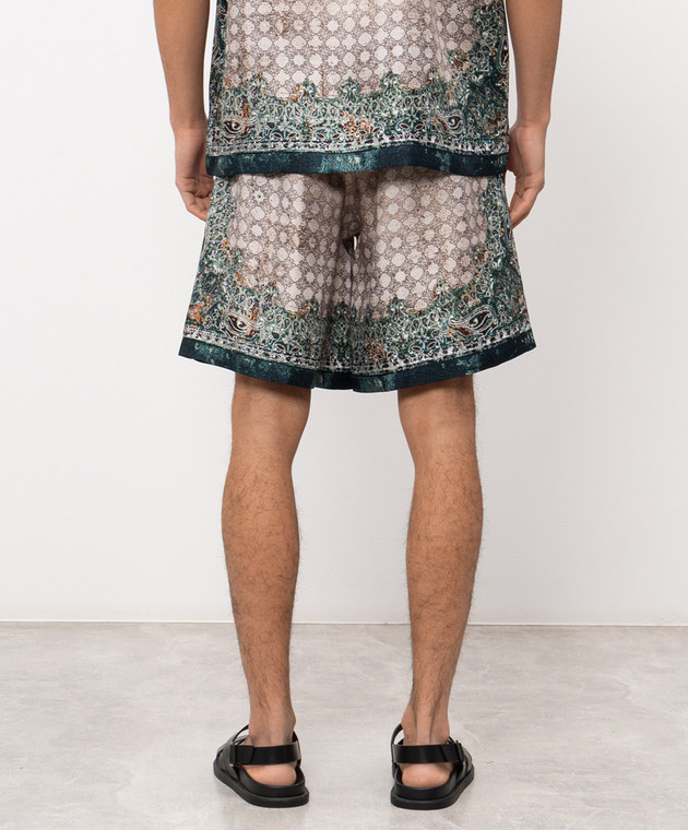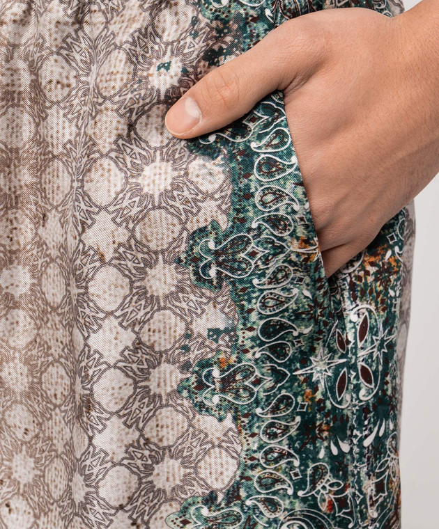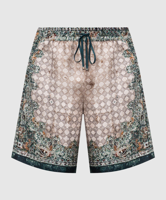 Бежеві шорти із шовку в брендовий принт