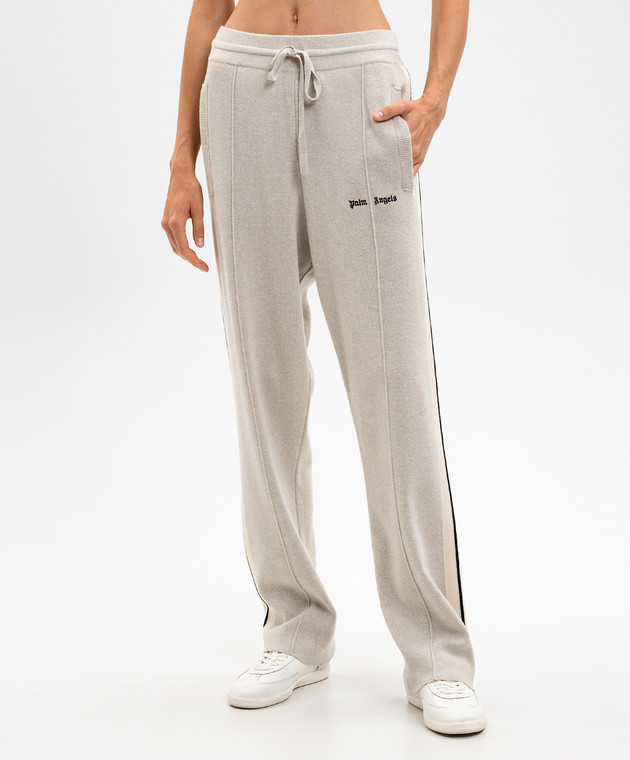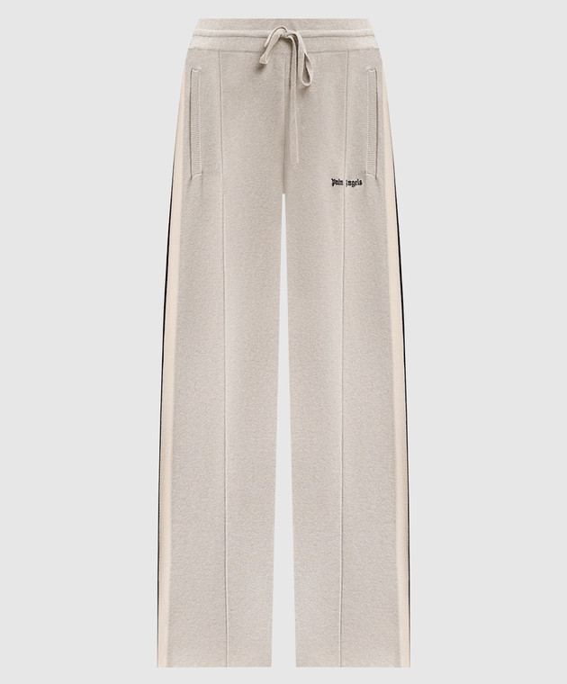 Бежеві спортивні штани з вовною і кашеміром з логотипом