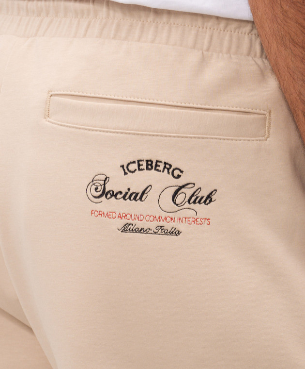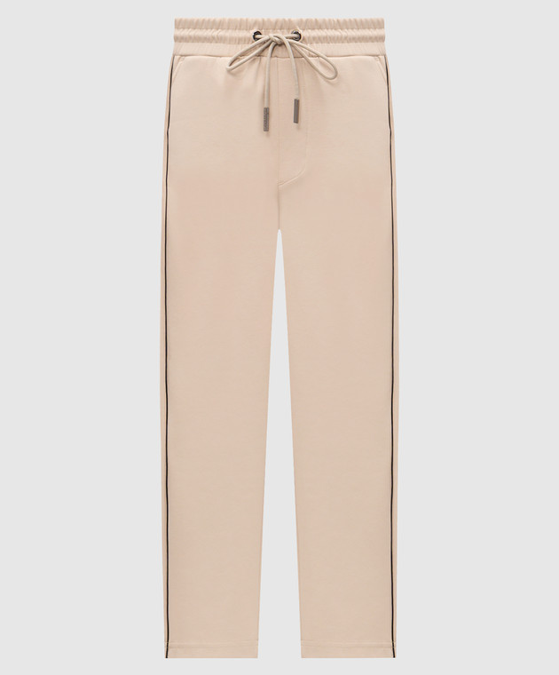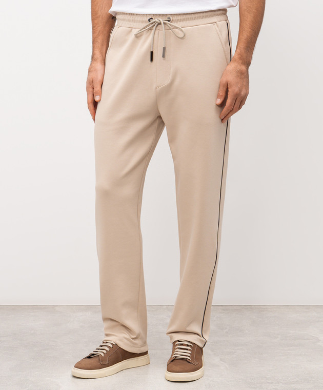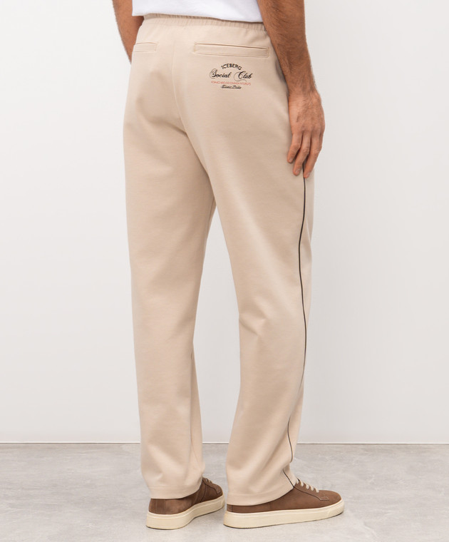 Бежеві спортивні штани з вишивкою логотипа
