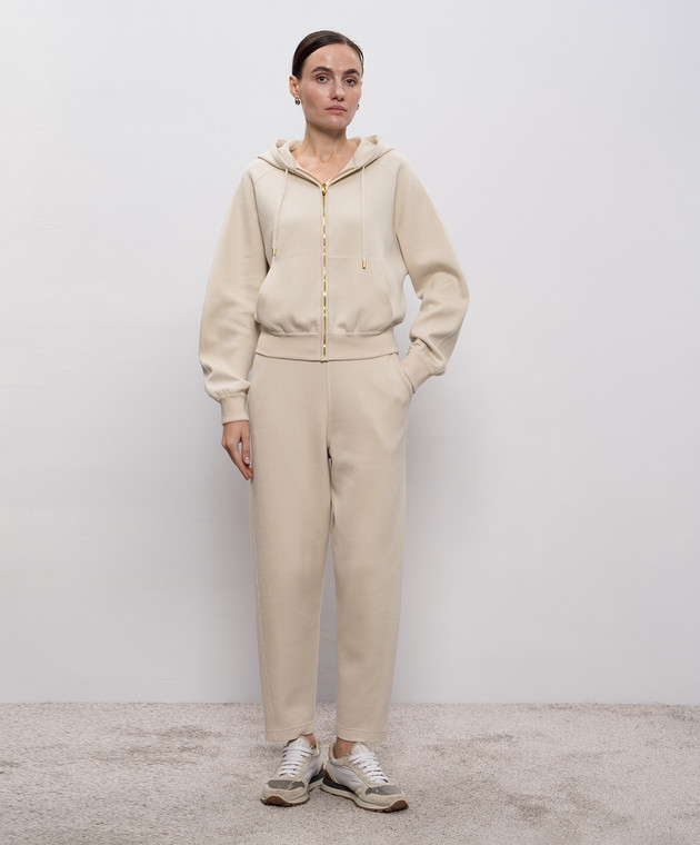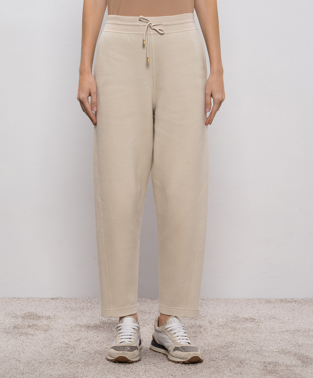Бежеві спортивні штани Viera з шовком і кашеміром