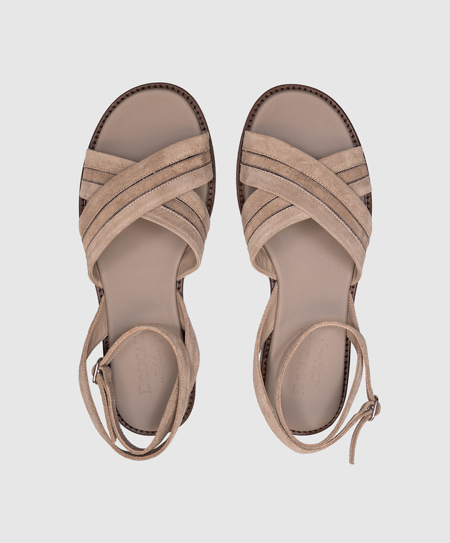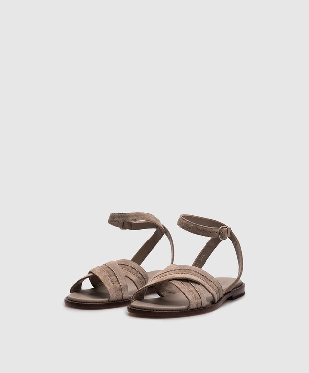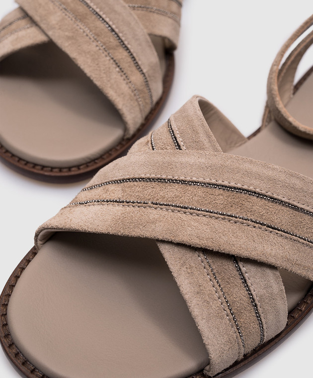 Бежеві замшеві босоніжки з ланцюжком моніль