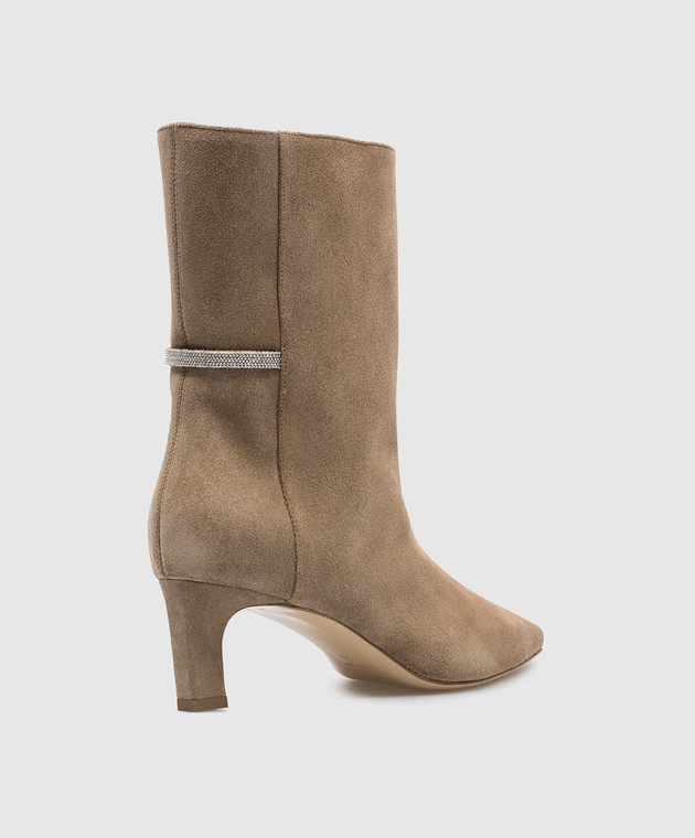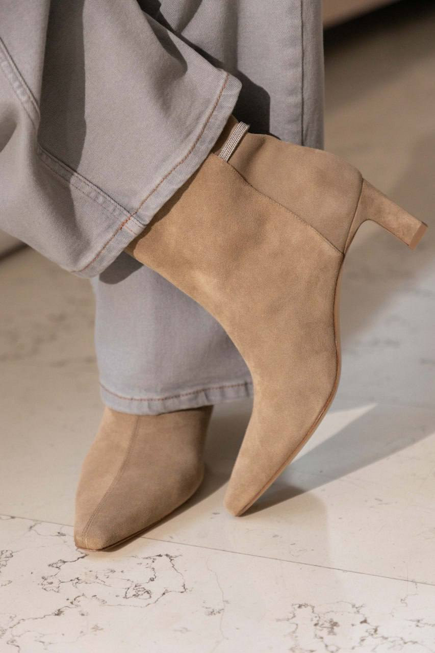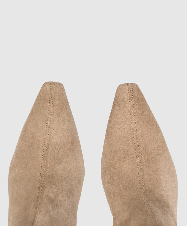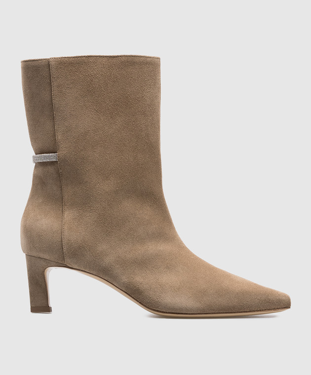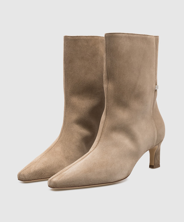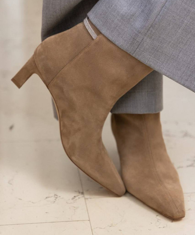 Бежеві замшеві ботильйони з ланцюжком моніль