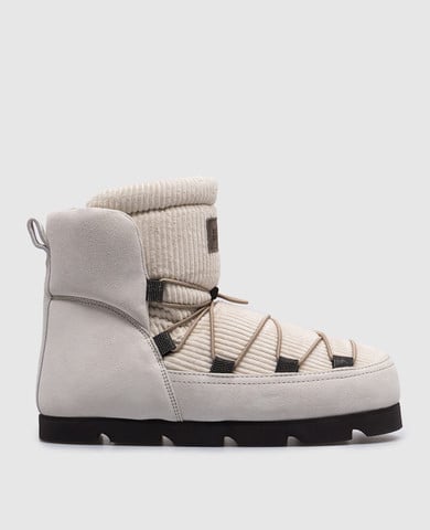Бежеві замшеві черевики на хутрі з ланцюжком моніль