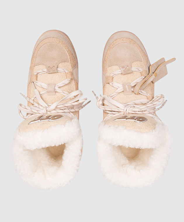 Бежеві замшеві черевики на хутрі з логотипом