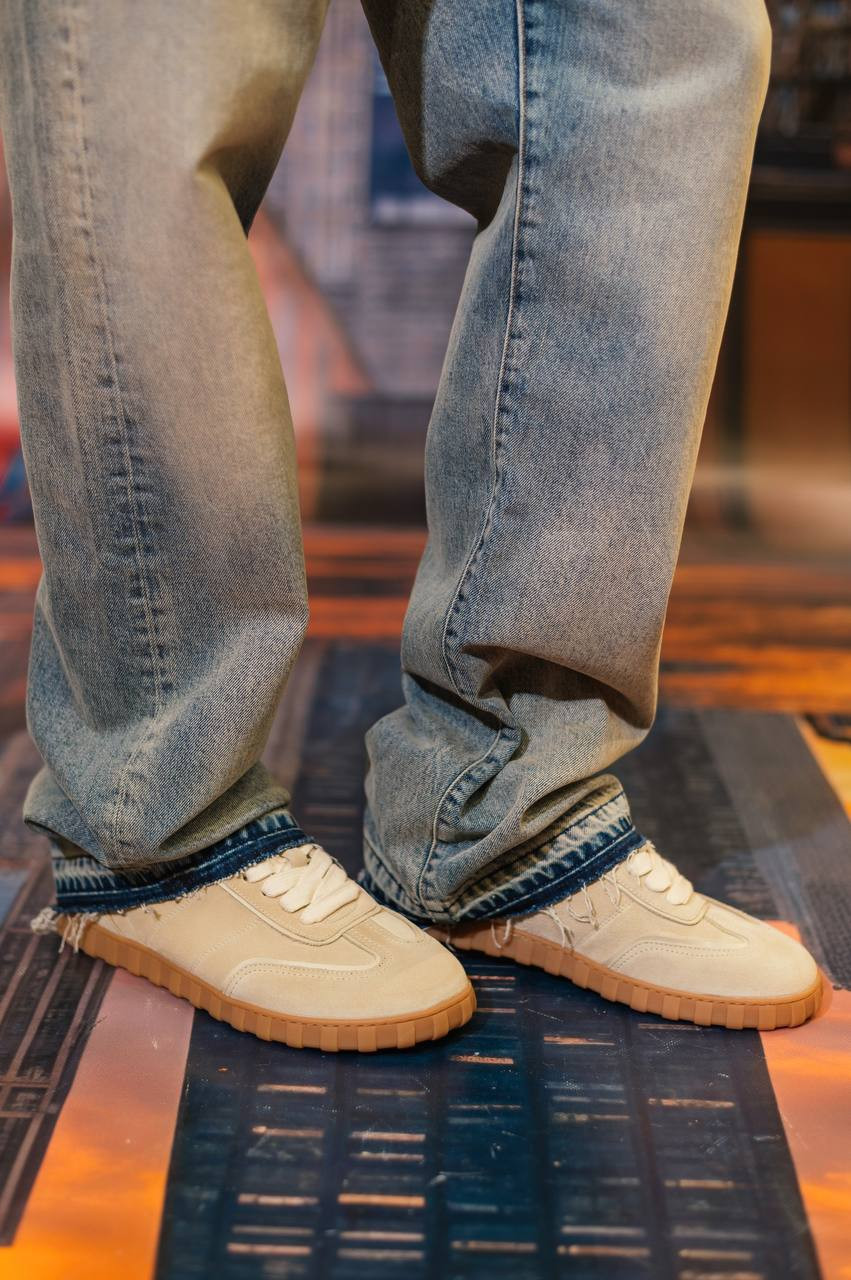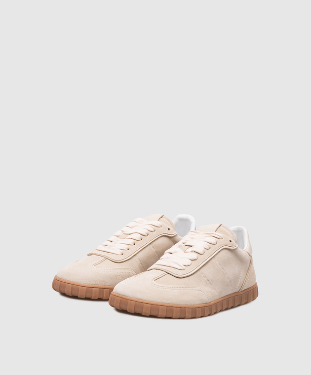 Бежеві замшеві кеди SN433 з логотипом