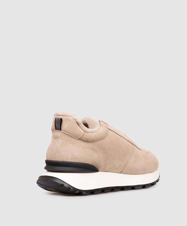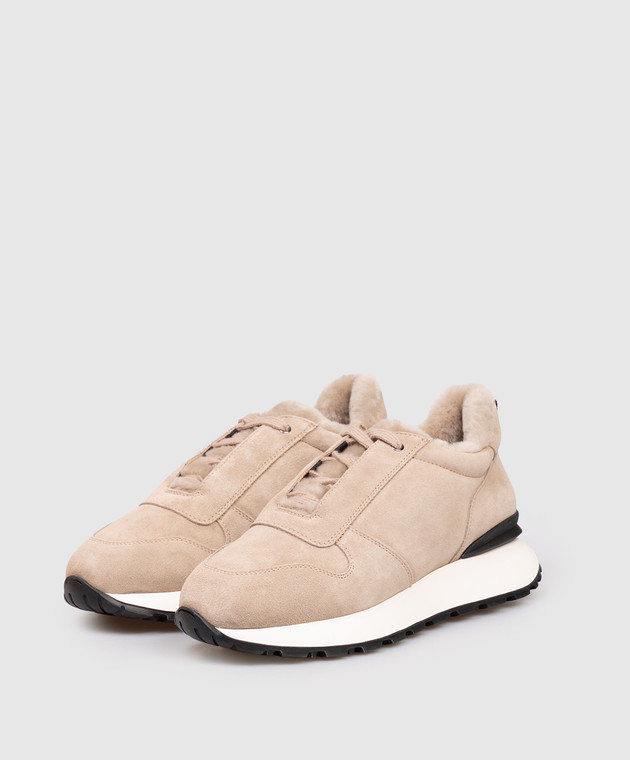 Бежеві замшеві кросівки на хутрі