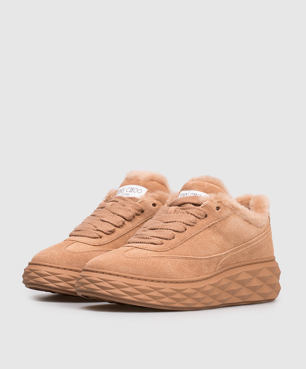 Бежеві замшеві кросівки на хутрі Retro Diamond Maxi