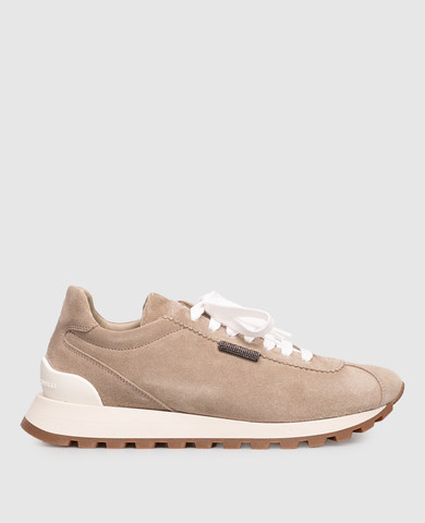 Бежеві замшеві кросівки з ланцюжком моніль