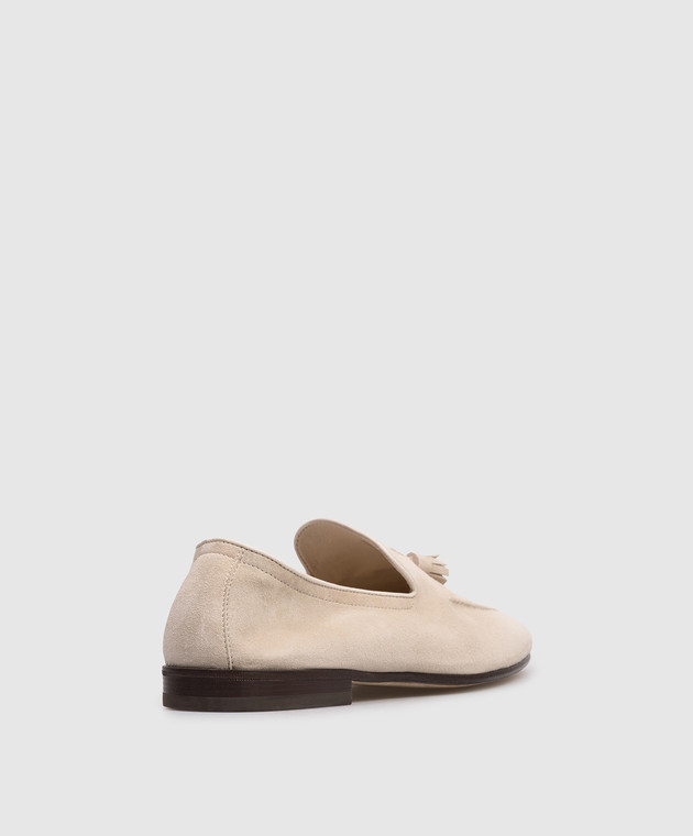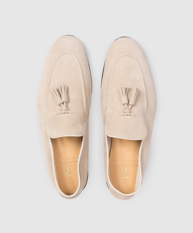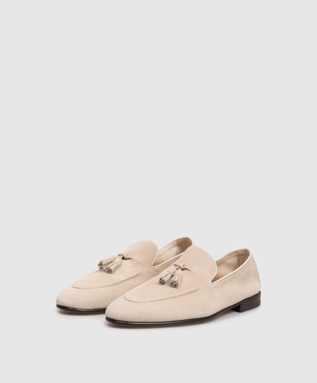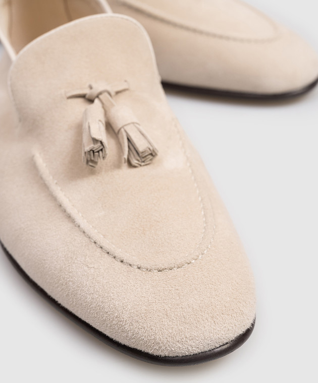 Бежеві замшеві лофери з китицями