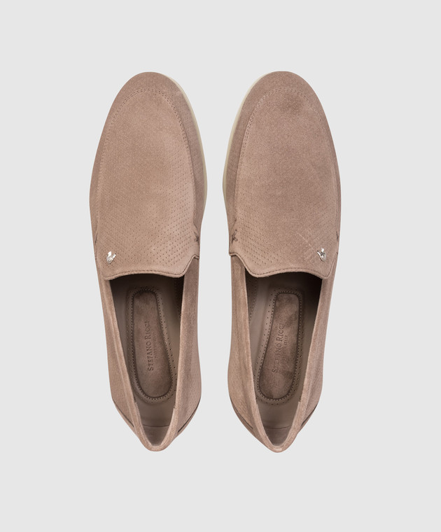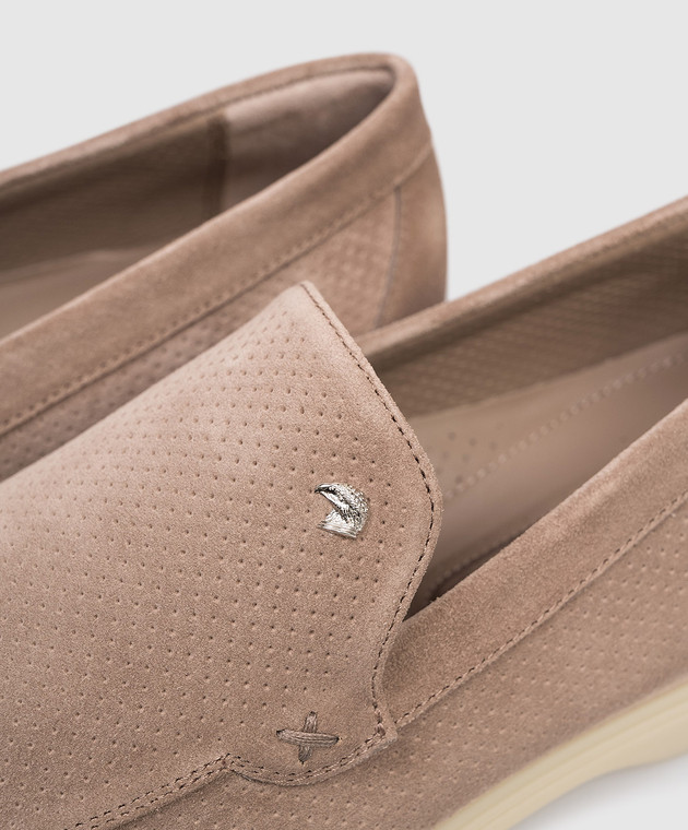 Бежеві замшеві лофери з перфорацією
