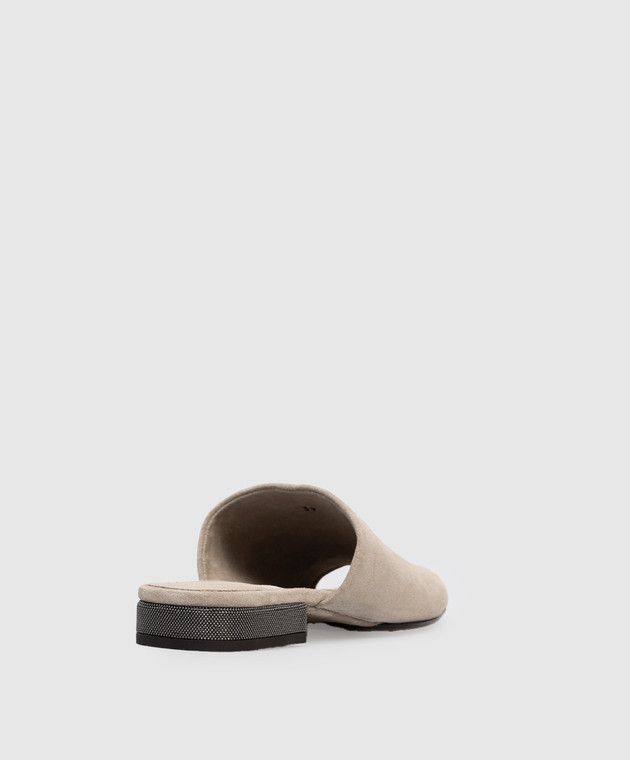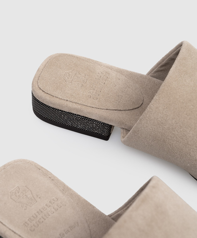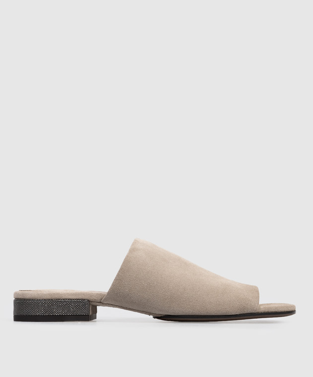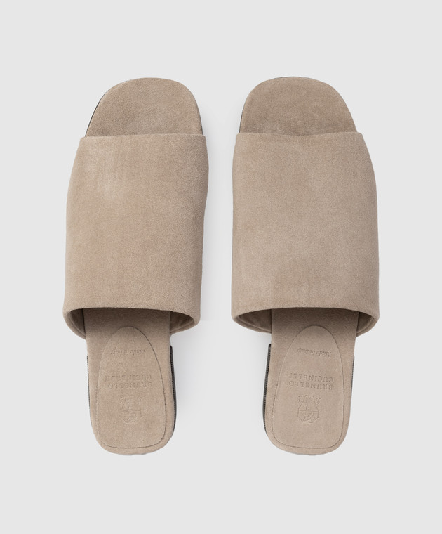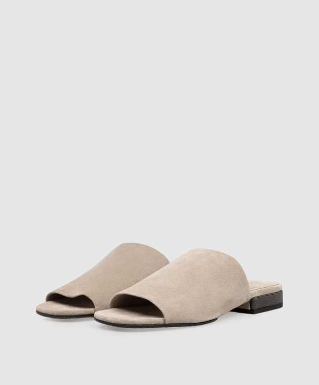 Бежеві замшеві шльопанці з ланцюжком моніль