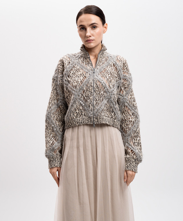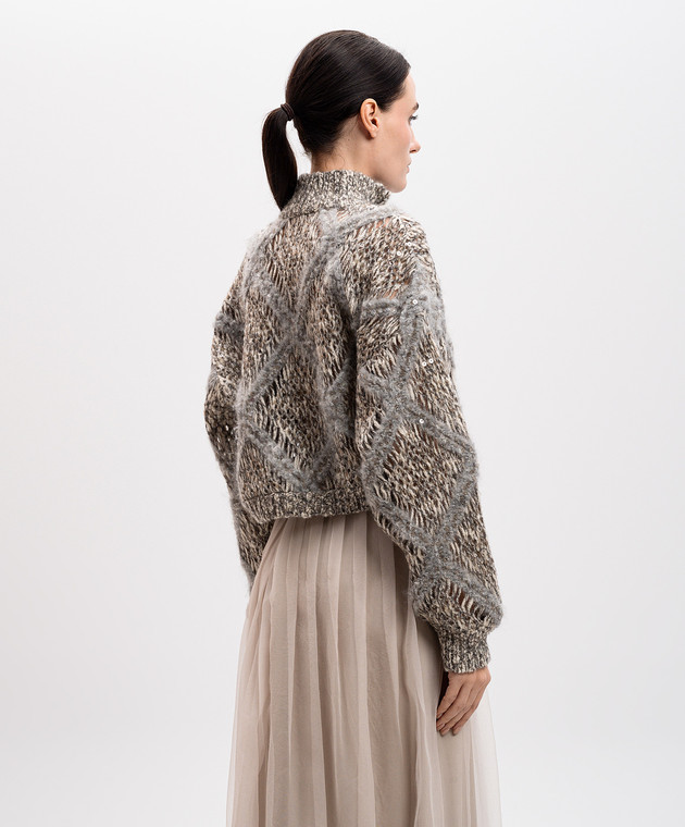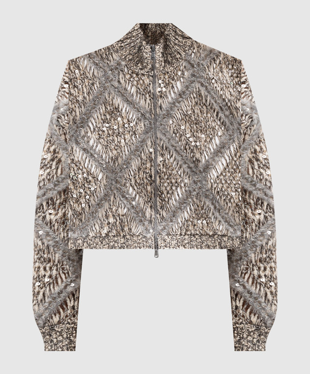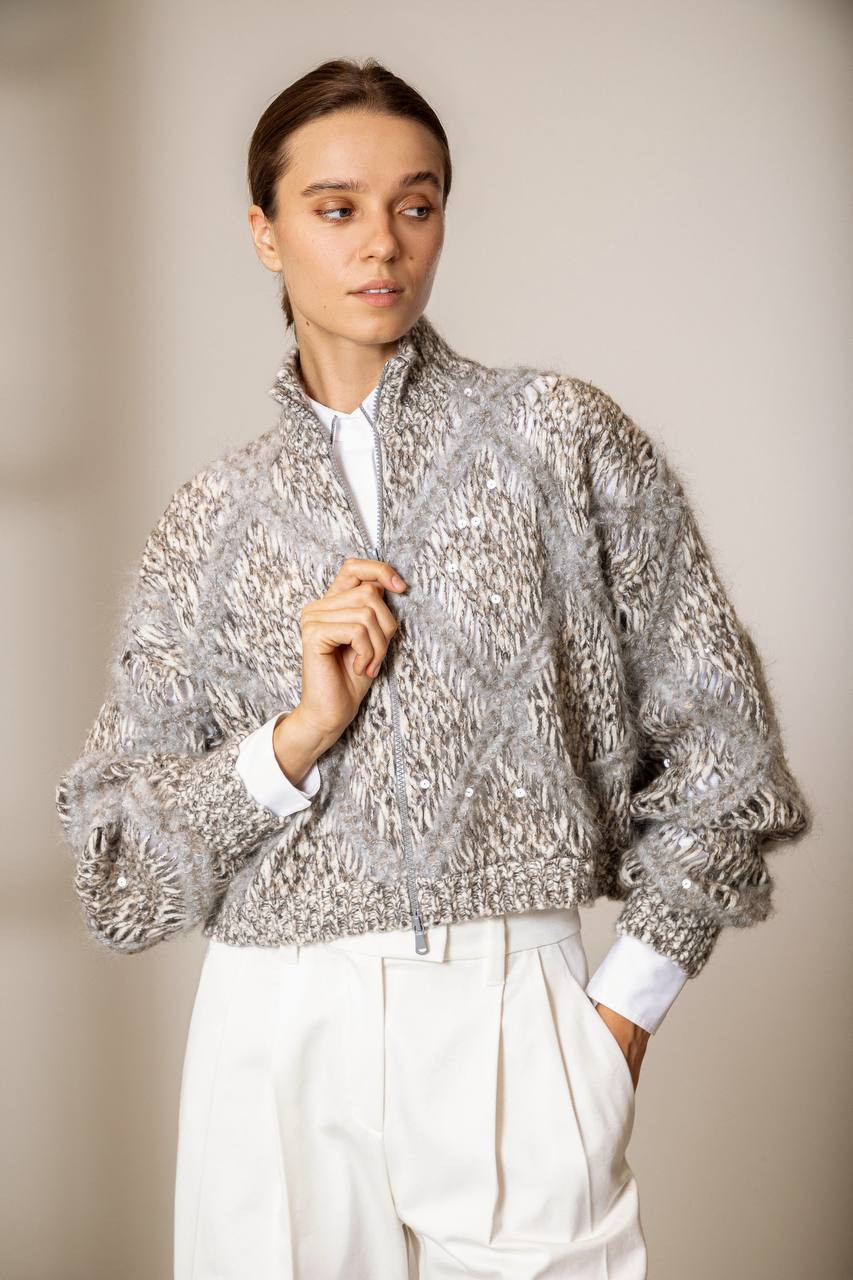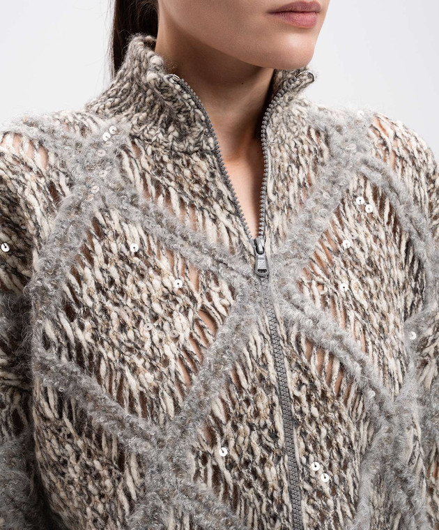Бежевий ажурний кардиган з вовною альпаки з паєтками