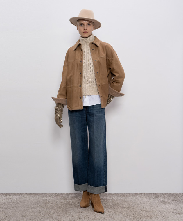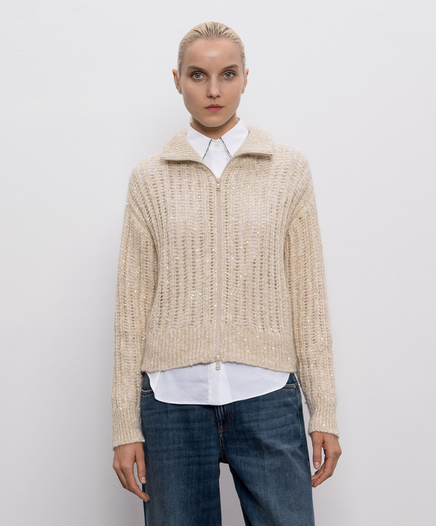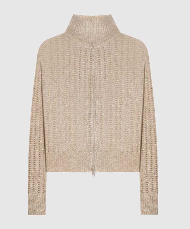 Бежевий ажурний кардиган з вовною та кашеміром