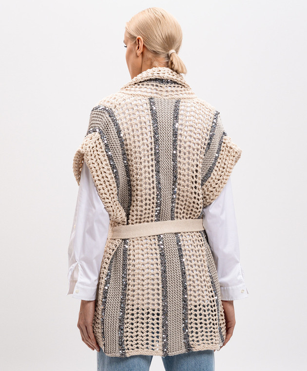 Бежевий ажурний жилет з льоном і шовком з паєтками