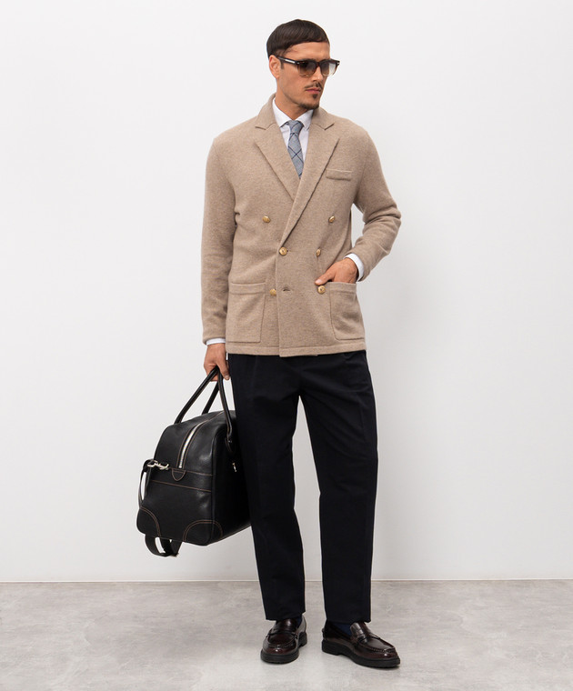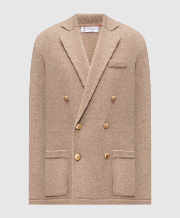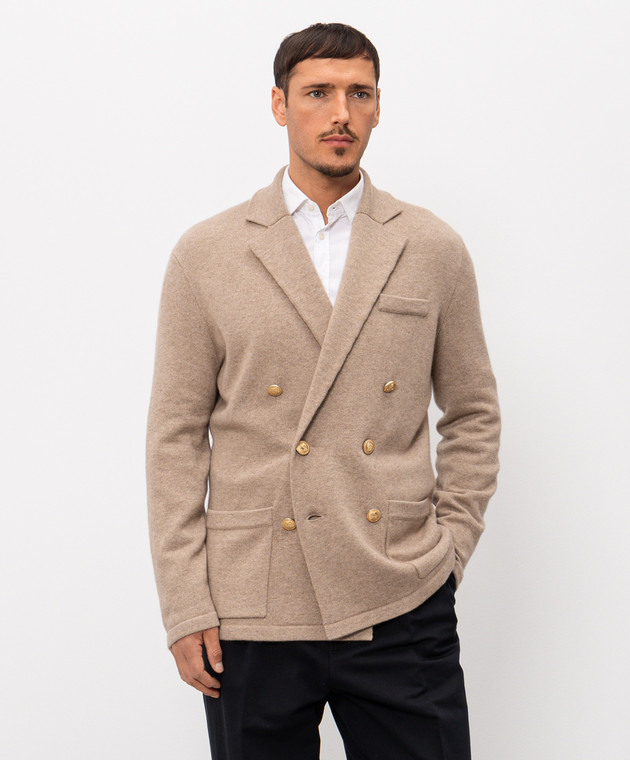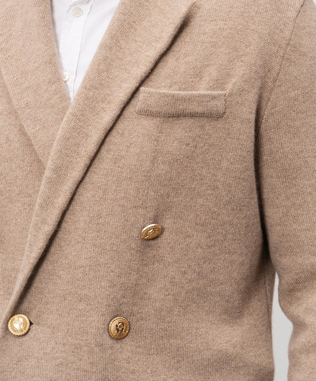 Бежевий двобортний кардиган з кашеміру в стилі піджака