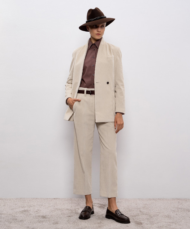 Бежевий двобортний вельветовий жакет