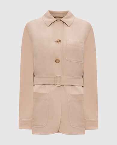 Бежевий двобортний жакет GERLA з льону в смужку