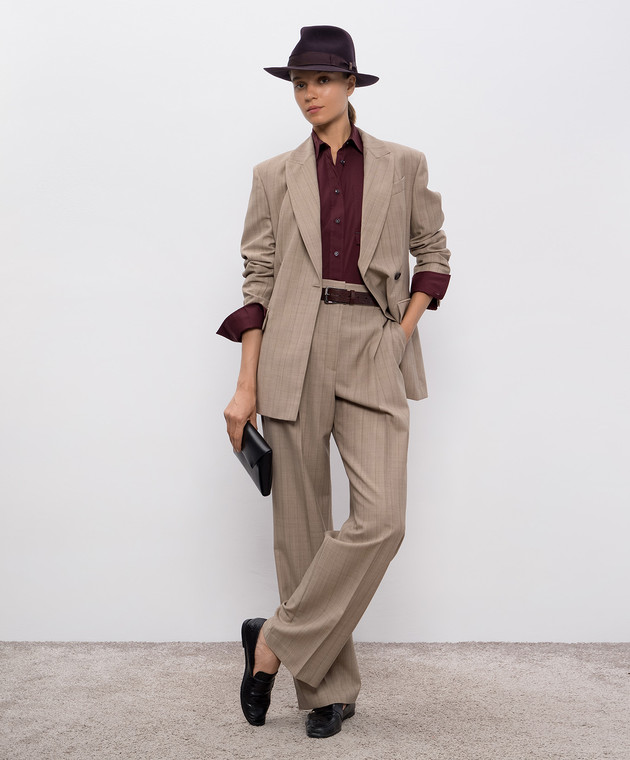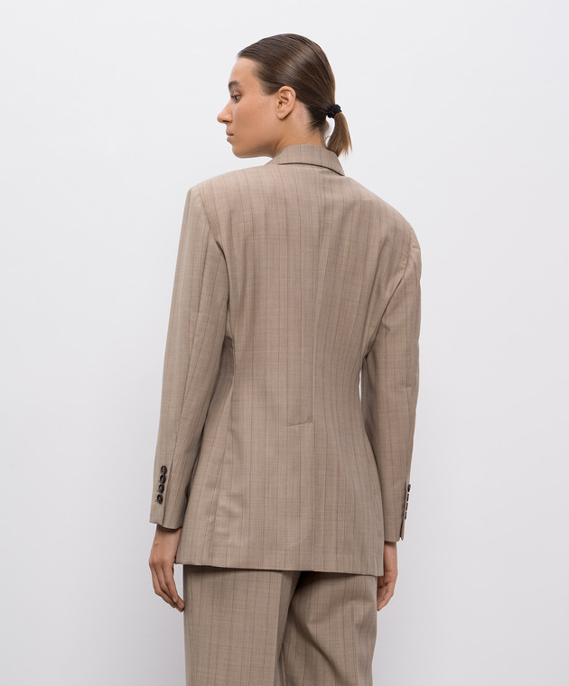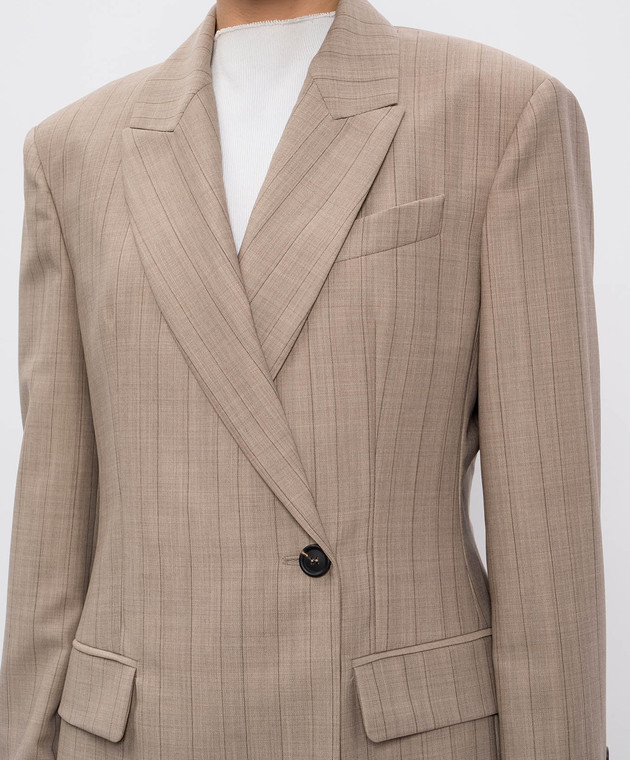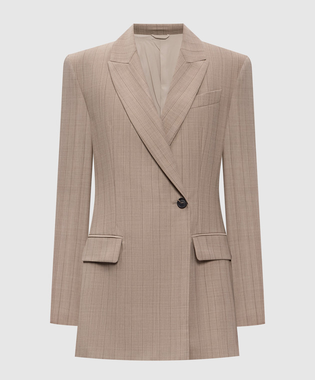 Бежевий двобортний жакет з вовни в смужку