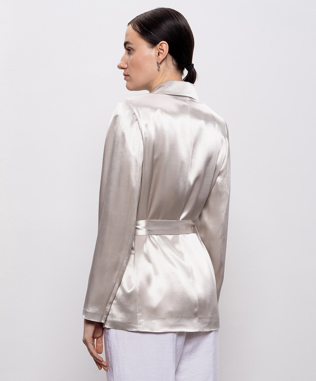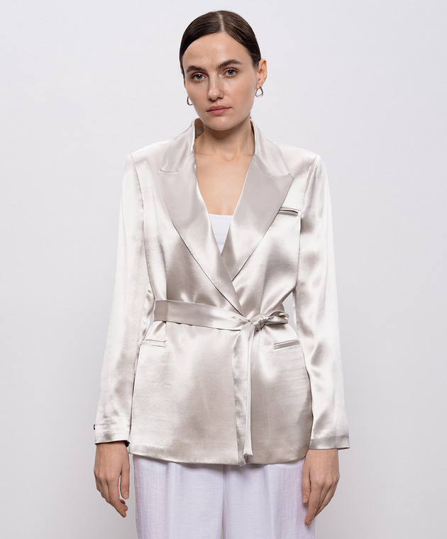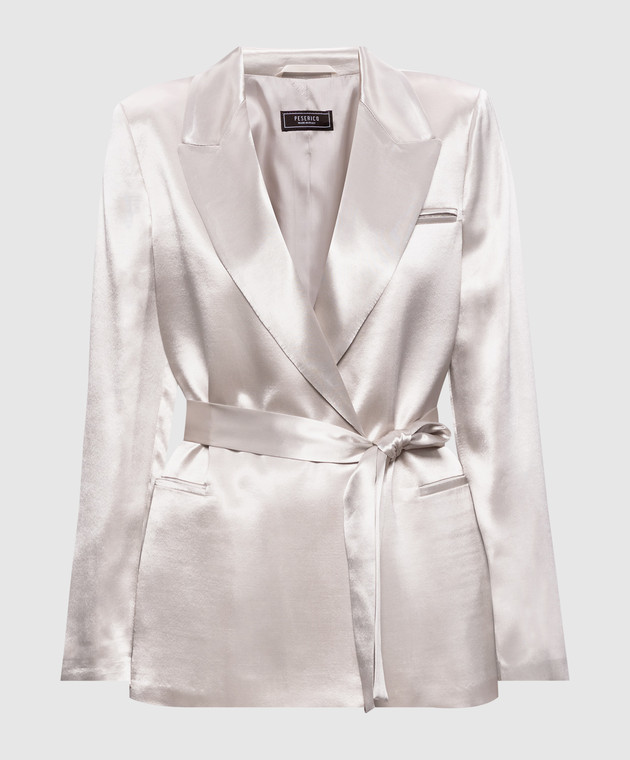 Бежевий двобортний жакет з поясом