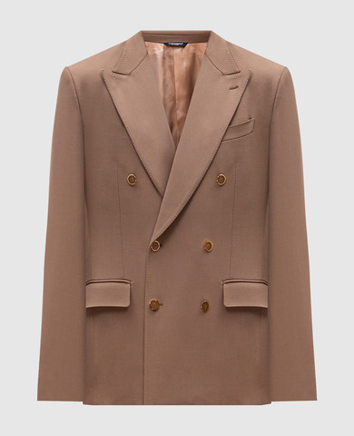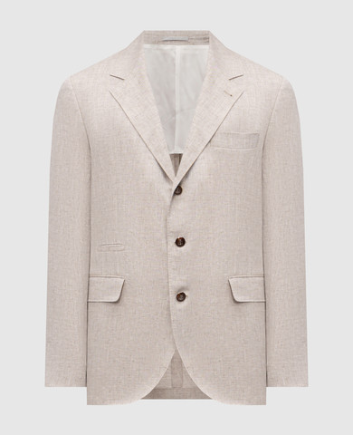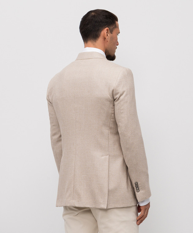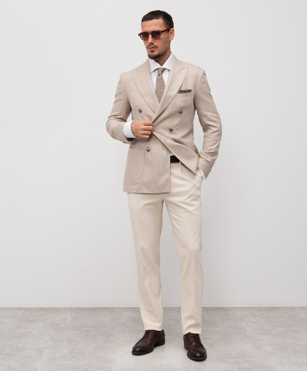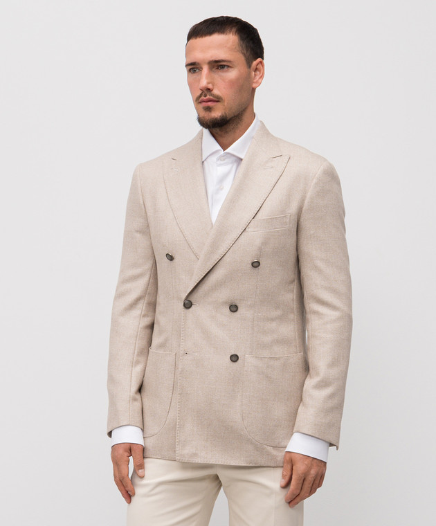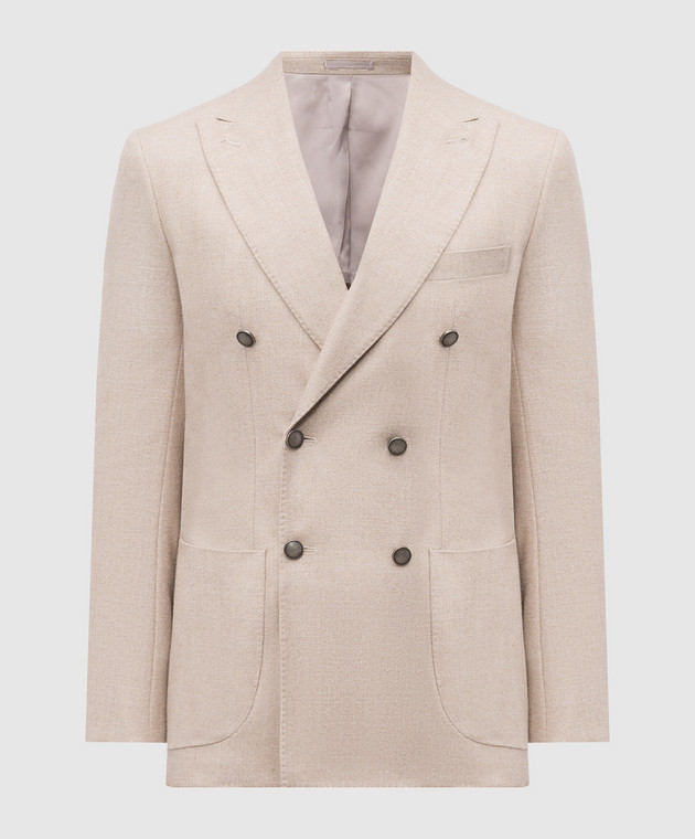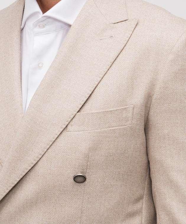 Бежевий двобортний блейзер з вовни, шовку і льону