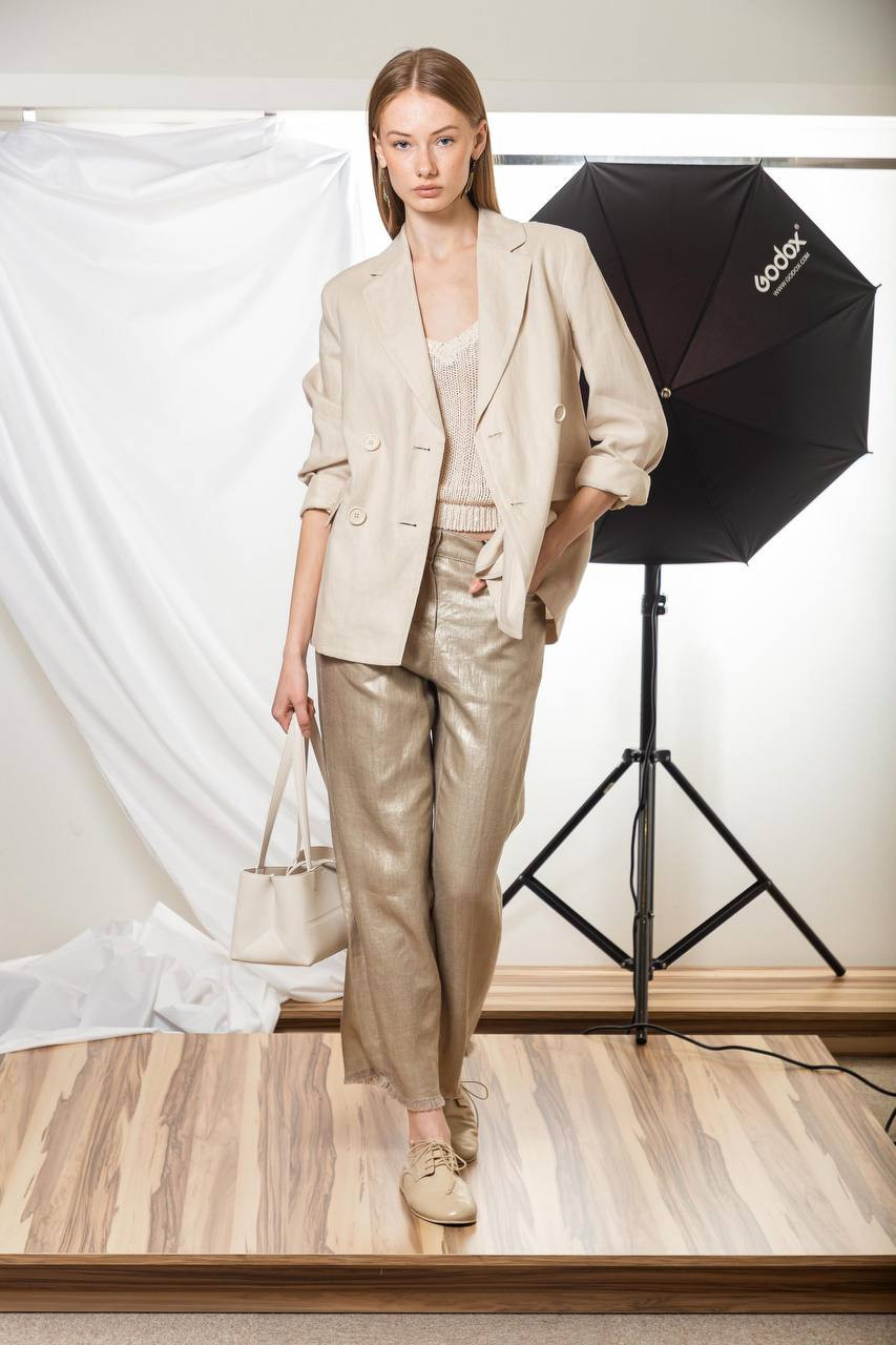 Бежевий двобортний жакет Laura з льону